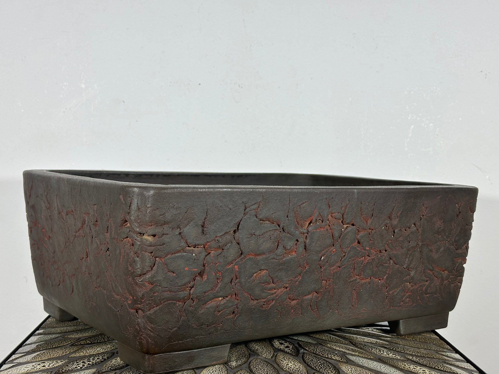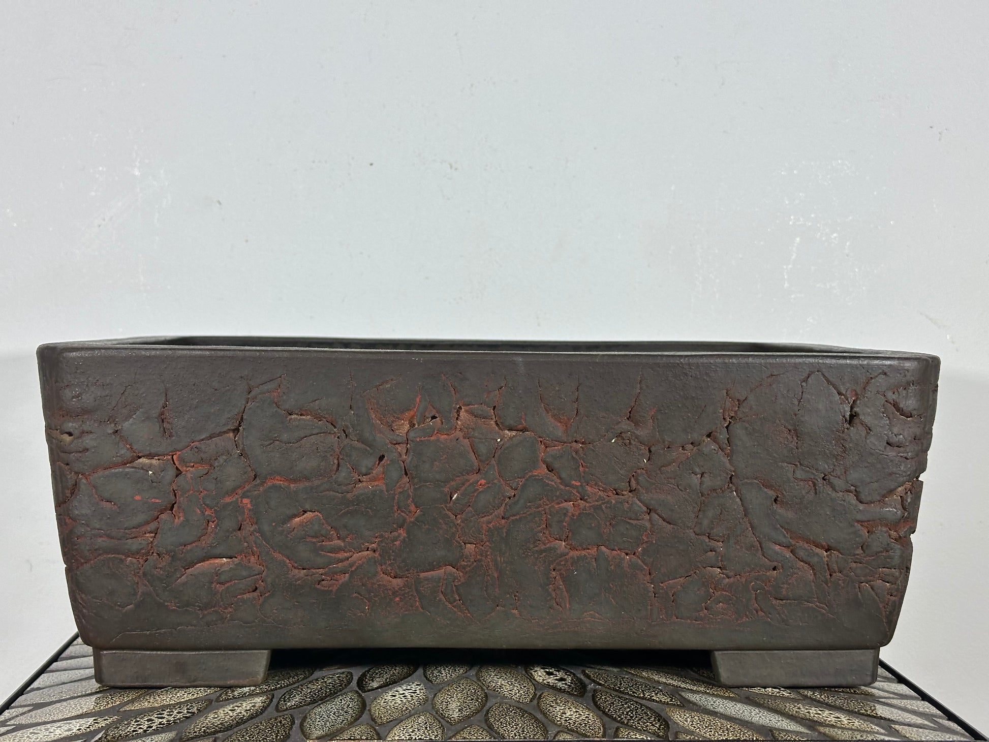 Preowned Vintage Japanese Tokoname Unglazed Rectangular Bonsai Pot Yamakou - 16.25” By 12.25”